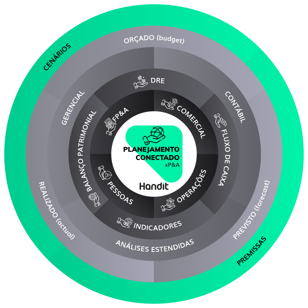 A Handit é uma plataforma brasileira de EPM (Enterprise Performance Management) que integra planejamento, orçamento, forecast, análises de desempenho e reporting em um só ambiente colaborativo e conectado ao ERP.